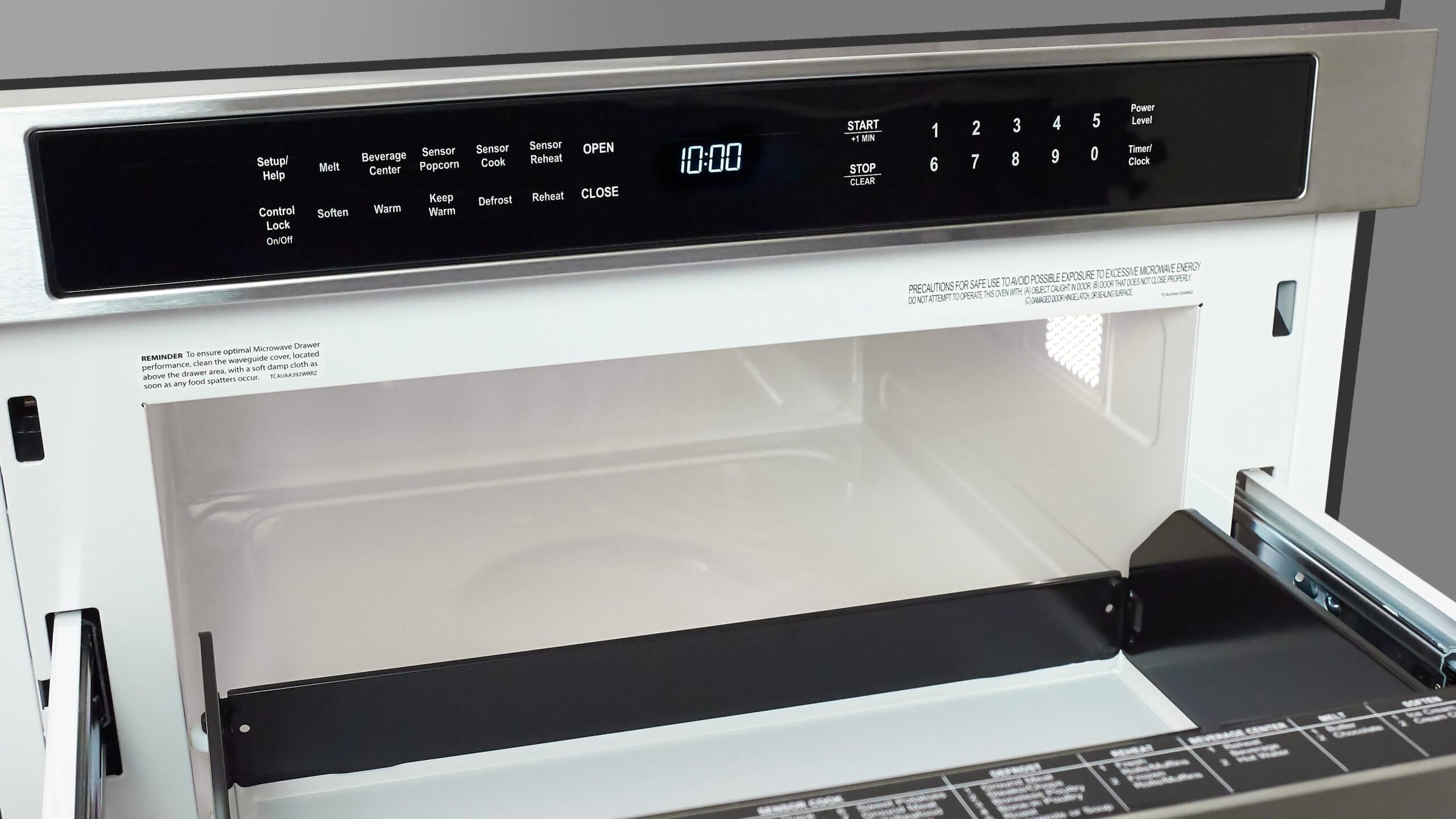 This built-in drawer microwave has an elegant modern surface and hidden controls. The 1.2 cu. ft. drawer is tall enough for an average 20 oz mug cup and up to a 4 qt. casserole dish.