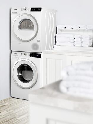 This 24′ Washer and Heat Pump Dryer Combination by Summit comes with 2.3 cu. ft. Washer Capacity and 3.88 cu. ft. Dryer Capacity. It also features Stacking Feet Included, 3 Wash Mode, 14 Dry Settings, Condensation Drainage Hose, Delay Start and is Energy Star