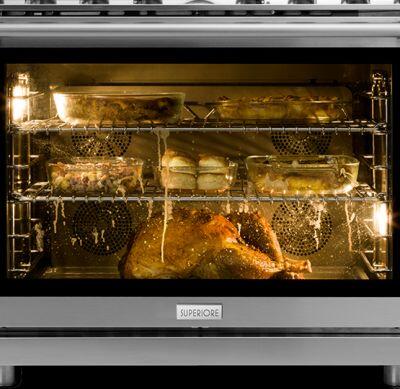 All SUPERIORE ranges are designed with exclusive features like our unique “Cool Flow System” that generates a flow of cold air thanks to inner fans that are engineered to keep cool to the touch knobs, handle and exterior surfaces, to render our products not just safe, but grand-child-safe.
