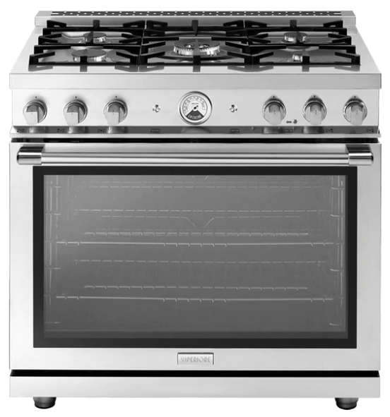 This 36′ LA CUCINA All Gas Range by Superiore comes with 5 Aluminum Sealed Burners and a 6.7 cu. ft. Capacity Gas Convection Oven for all your cooking needs. It also features Cast Iron Grates and Panorama Door Design.